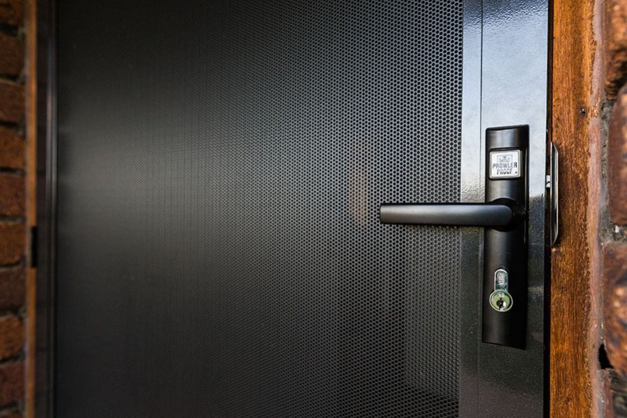 It’s built in our hi-tech factory as an all-aluminium design with Prowler Proof’s famous welded, seamless corners. The mesh is a single aluminium sheet, perforated and powder coated to the high standards you’d expect from Prowler Proof. The perforations are exactly the right size – small enough to keep insects out, big enough to allow excellent airflow and transparency. The mesh is joined to the heavy duty aluminium frame in a patented process, unique to Prowler Proof.