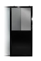 The solid panel can be any height you like. It can also be any colour you like – matched to the frame or black like the Protec mesh. Strength is not compromised in a solid panel door, the panel is made of 1.2 mm solid aluminium.